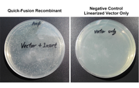 The Quick-Fusion Cloning Kit is designed for fast, directional cloning of DNA fragment into any vector at any site. By using this kit for cloning, experimenters avoid the necessity for restriction enzyme cut of PCR product and the selection of restriction enzyme site will be flexible (or unlimited). Additionally, the linearized vector and PCR product can be cyclized in only 30 minutes at 37℃. Compared to the conventional cloning method, a 15-20 base tract is added at the ends of PCR primers corresponding to the ends of the linearized vector.
