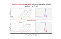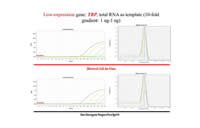 CDNA synthesis was performed using RNA Total (10 fold gradient) of Hela cells. According to the real-time fluorescence quantitative PCR, using 1 UL of cDNA product was used as template, respectively of high abundance genes actb and moderate demeanor genes B2M and low abundance gene TBP were expression detection and qPCR mix use Biotool it 2x SYBR Green qPCR master mix.